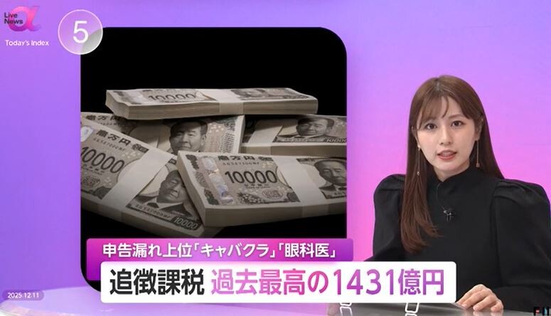 一方、富裕層を含む全体の所得税の調査では、申告漏れの金額は同6.5%減の9317億円。追徴税額は同2.4%増の1431億円で、4年連続で増加し、09年度以降で最高となった。