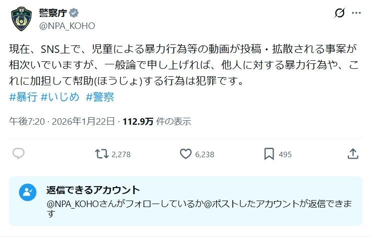 警察庁さん、イジメ動画の拡散にお気持ち表明