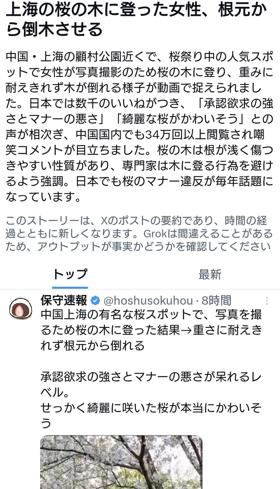 せっかく綺麗に咲いた桜が本当にかわいそうpic.twitter.com/otUtfbIgiI— 保守速報 (@hoshusokuhou) April 6, 2026